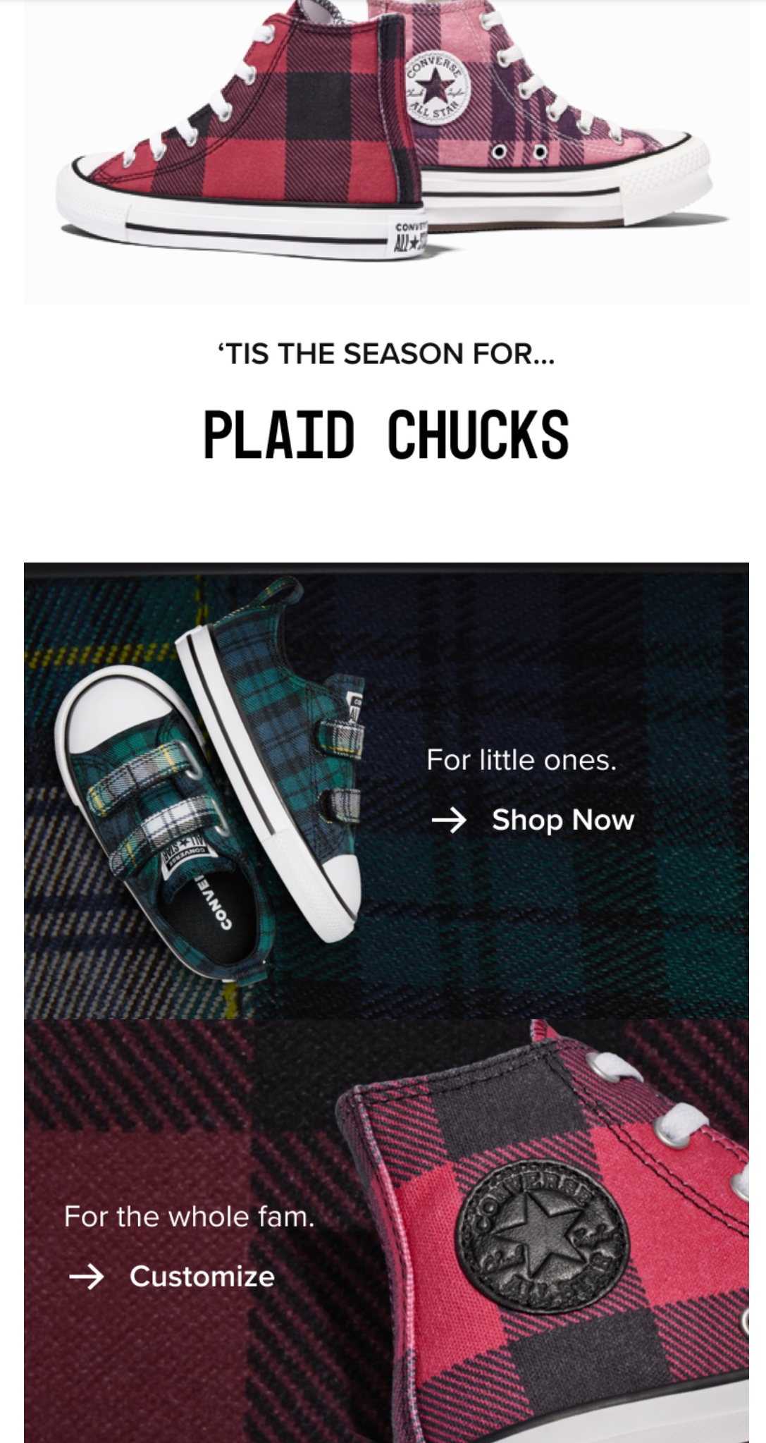 For almost 4 years, I wrote for Converse—everything from product copy, to site, email, SMS, and social copy.